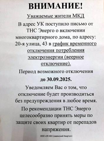 Извещаем Вас, что с 22.09.2025 сотрудниками управляющей компании будет проводиться проверка достоверности передаваемых сведений о показаниях и состояние индивидуальных приборов учета, установленных в жилом помещении, путем посещения помещений, в которых установлены эти приборы учета.